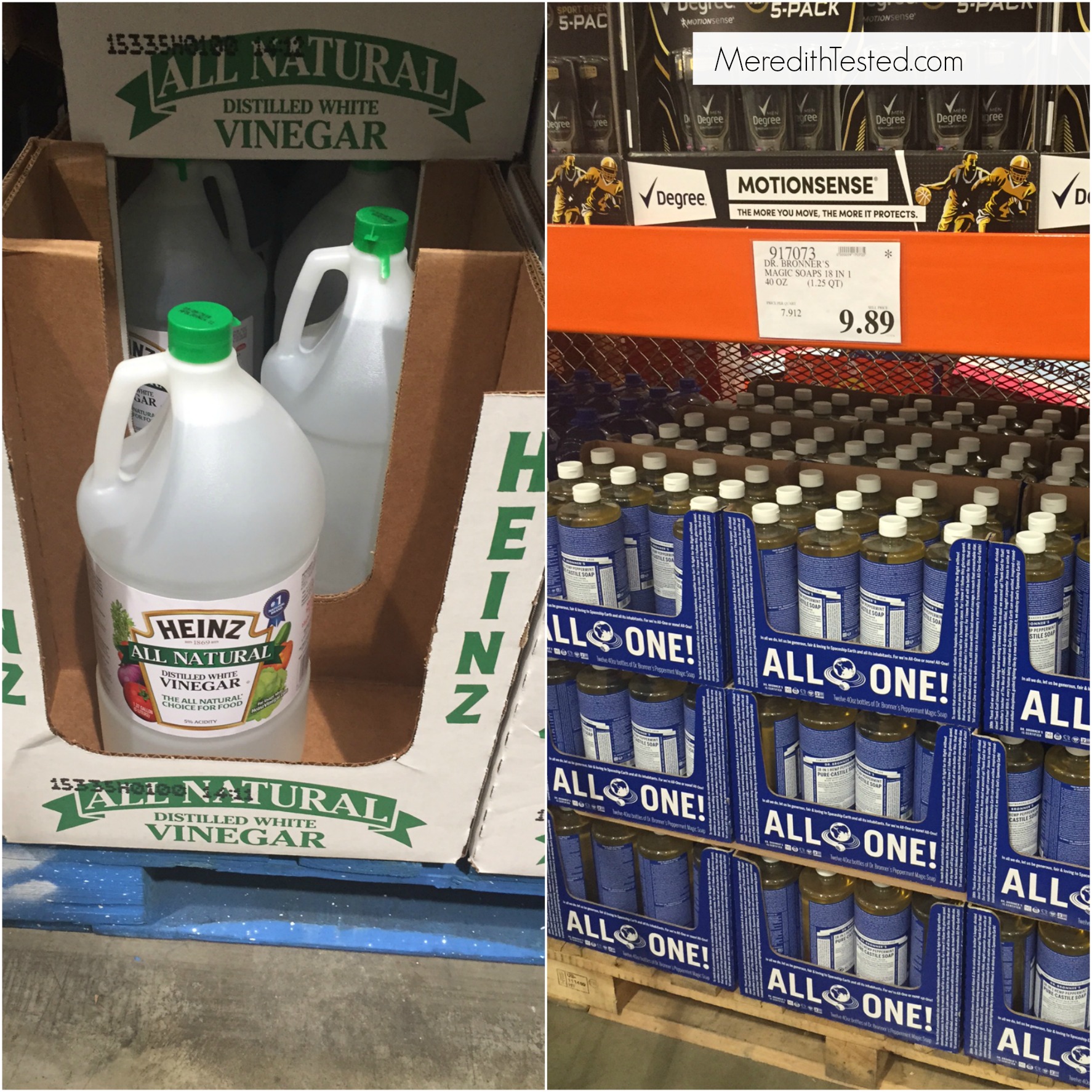 Some items at Costco are helpful in waste reduction. If you buy a big container of something, your packaging-to-product ratio is better than buying a smaller version. Good examples of this are the white vinegar and large bottles of Dr. Bronner’s castille soap.