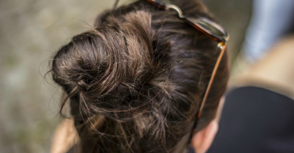 If you have long hair like me, throw your hair up in a crazy bun on top of your head. I also like putting on a stretchy headband to stop the oil from dripping down my face.