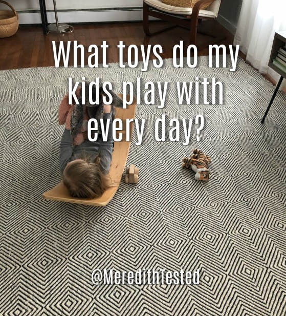 If you follow me here or on Instagram, you might know that I’m attempting a “no buy year,” which has proven to be interesting and challenging. There haven’t been a lot of “new” things coming in — not that there were before, either — so I’ve been able to see what my kids actually play with. Even when they have gotten something new as a gift, they tend to go right back to these staples. This is not an exhaustive list of what we play with every day, but it’s the cream of the crop.