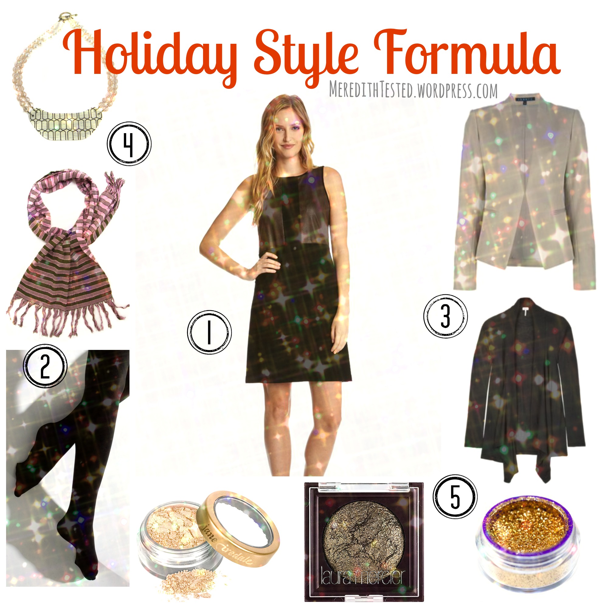 This is the post where I reveal my go-to holiday outfit and makeup. Basically this is what I wear to family gatherings, not necessarily the office party. OK, probably the office party, too. This outfit and makeup is designed to be unfussy so you can easily go from rolling around on the floor with your 2 year old niece to sitting with the grown-ups gossiping over a cocktail.